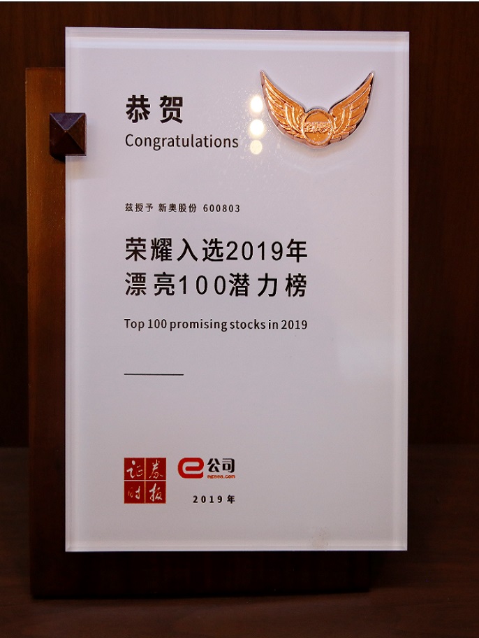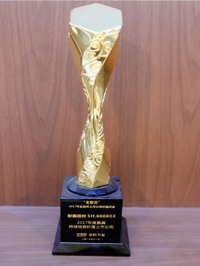 2017年11月,新奥股份在金融界上市公司价值评选中融合“最具持续投资价值上市公司”