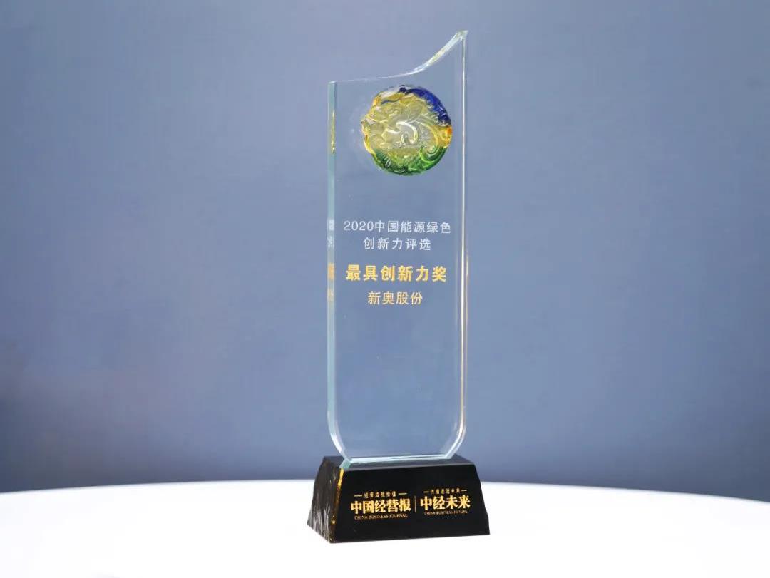 -     							2020-12-18    							新奥股份荣膺“最具创新力奖”近日,由《中国经营报》和中经未来主办的2020中国企业竞争力年会周圆满落幕。在本届年会周备受关注的2020中经能源绿色创新力评选中,新奥天然气股份有限公司(以下简称:新奥股份,股票代码:600803) 凭借在绿色可持续发展中的卓越表现,荣获最具创新力奖。